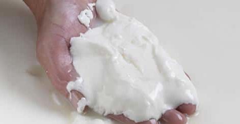 Le lait est additionné de ferment et de présure et repose pendant 24heures et se transforme alors en caillé.